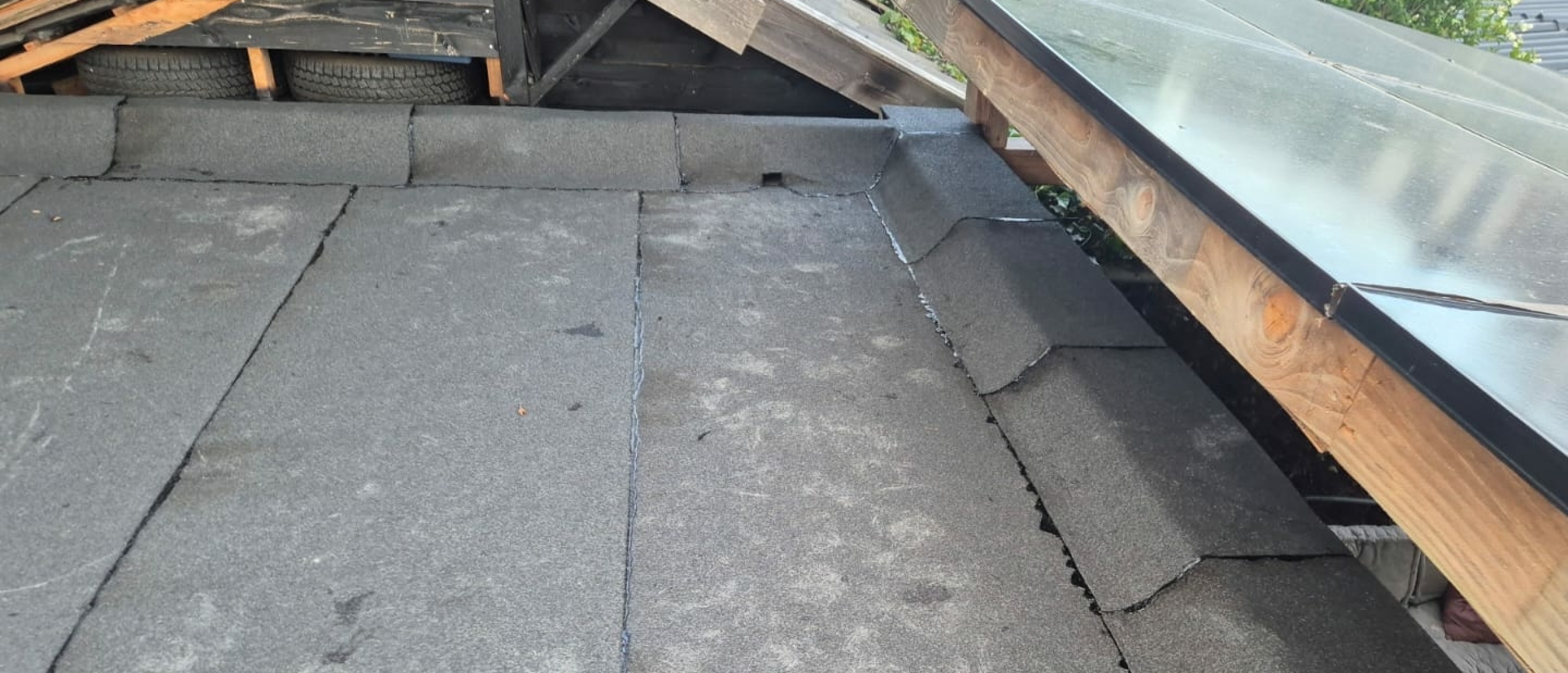 - De dakbedekking verouderd is maar nog stevig vastzit.